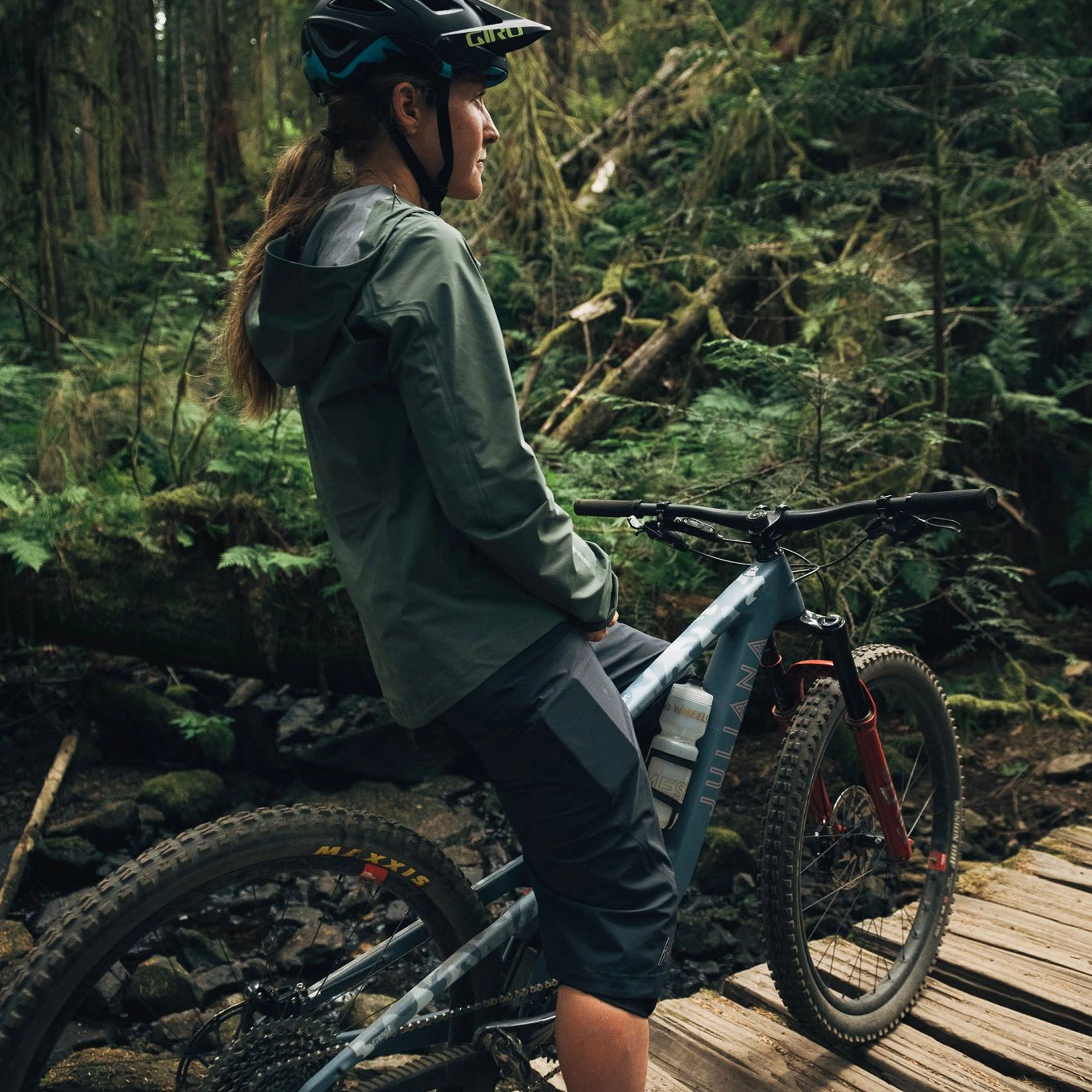 The ideal garment for wet rides off-road, 7mesh’s Skypilot Womens Jacket uses GORE-TEX Active fabric to ensure total waterproofness and superb breathability. The 3-layer construction means that it is rugged enough for mountain biking whilst still being small and light enough to pack away easily when not needed. Simple elasticated cuffs, drop tail and an over-the-helmet hood keep the weather out in the worst conditions and the riding-biased cut allows plenty of unrestricted movement on the bike.