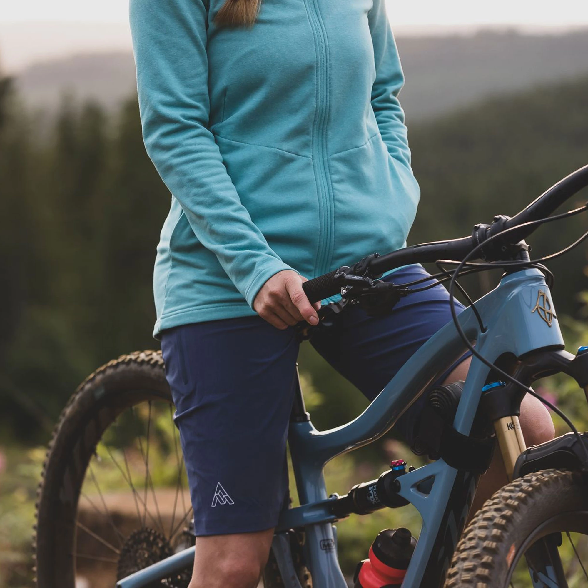 Tough yet comfortable, the Slab Womens Short from 7mesh has a four-way stretch DWR (durable water repellency) treated fabric cut for a slim, neat fit. The low profile theme continues with the svelte waistband, locking adjuster and ultrasonic taped seams, meaning that there is very little that could cause chafing even when worn under a pack. Despite the aggressive cut there is room for knee pads to be worn and valuables can be kept secure in the zipped thigh pocket.