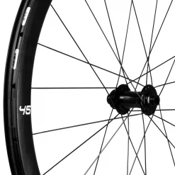 The wheelset provides a noticeable aerodynamic advantage, even at the kind of lower speeds that normal riders can attain, whilst the depth and profile ensure predictable, safe handling in crosswinds. The rear wheel is slightly deeper than the front for lower drag and to help the airflow over the back of the bike. The rim’s width also helps airflow by keeping the interface with the tyre smoother and supports the tyre wall better when under load in a corner.