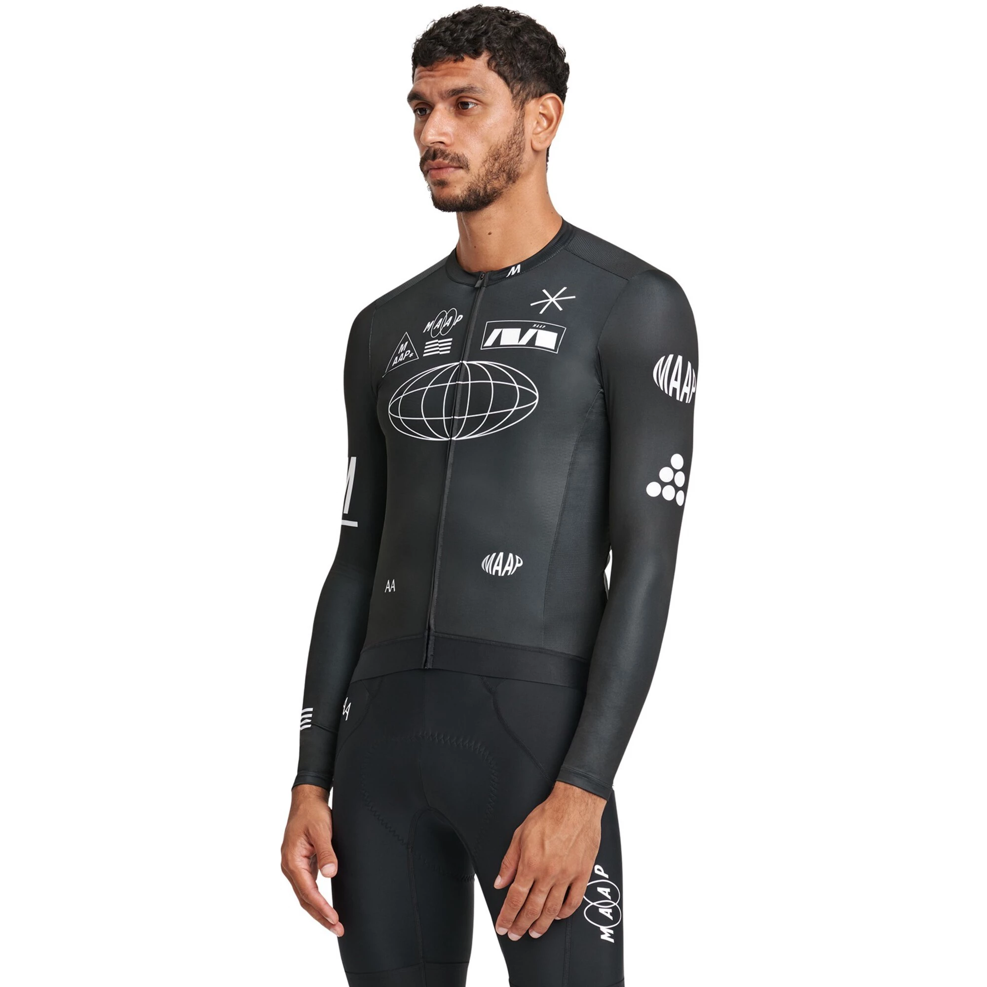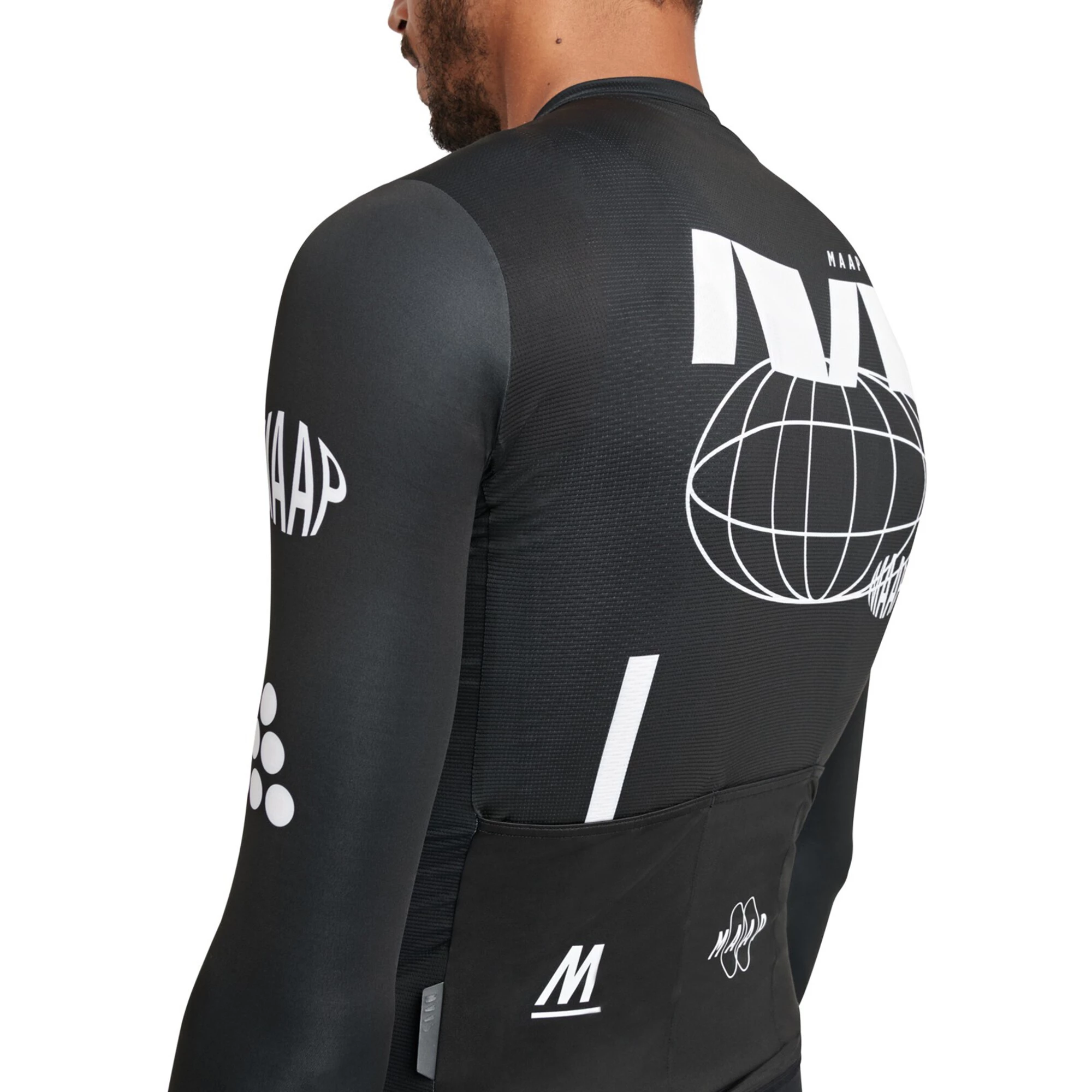 Style meets performance in the MAAP Axis Pro Long Sleeve Jersey. Designed for maximum coverage without excess warmth, the garment is ideal for summer riding and protects your skin from the sun. The signature Pro Fit includes contoured side panels, set-in sleeves and a low profile collar, reducing drag and improving comfort in the riding position.