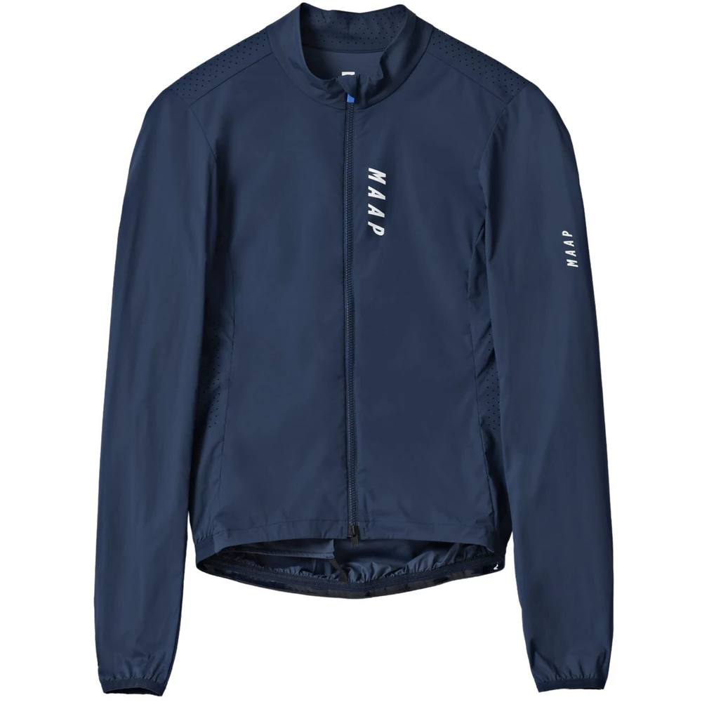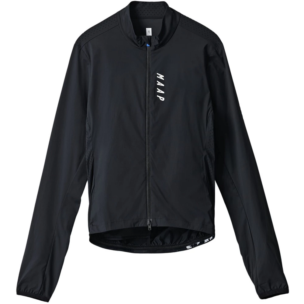 The MAAP Draft Team Womens Jacket creates an excellent barrier to the elements while maximising stretch and comfort. The fabric is wind resistant with a DWR (durable water repellent) coating, and laser-cut ventilation panels ensure breathability is not compromised.