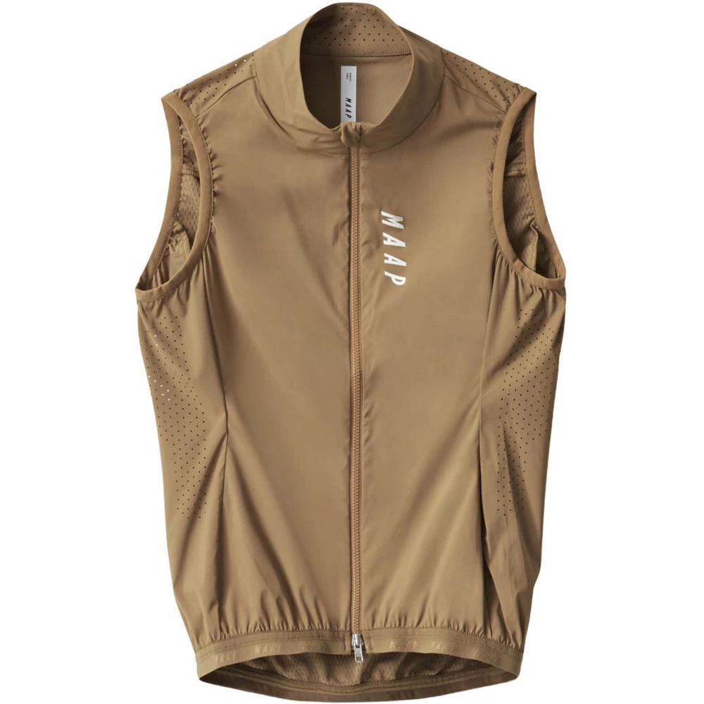 The MAAP Draft Team Women’s Vest uses stretchy wind and water-resistant material on the forward-facing panels to shield the rider from cold winds, chilly early morning temperatures and drizzle. The low weight of this material enables the vest to be packed down into a jersey pocket when the conditions brighten up, making it ideal for taking on every ride. Laser-cut perforations on the shoulders and sides combine with the mesh back panel to keep the breathability high.