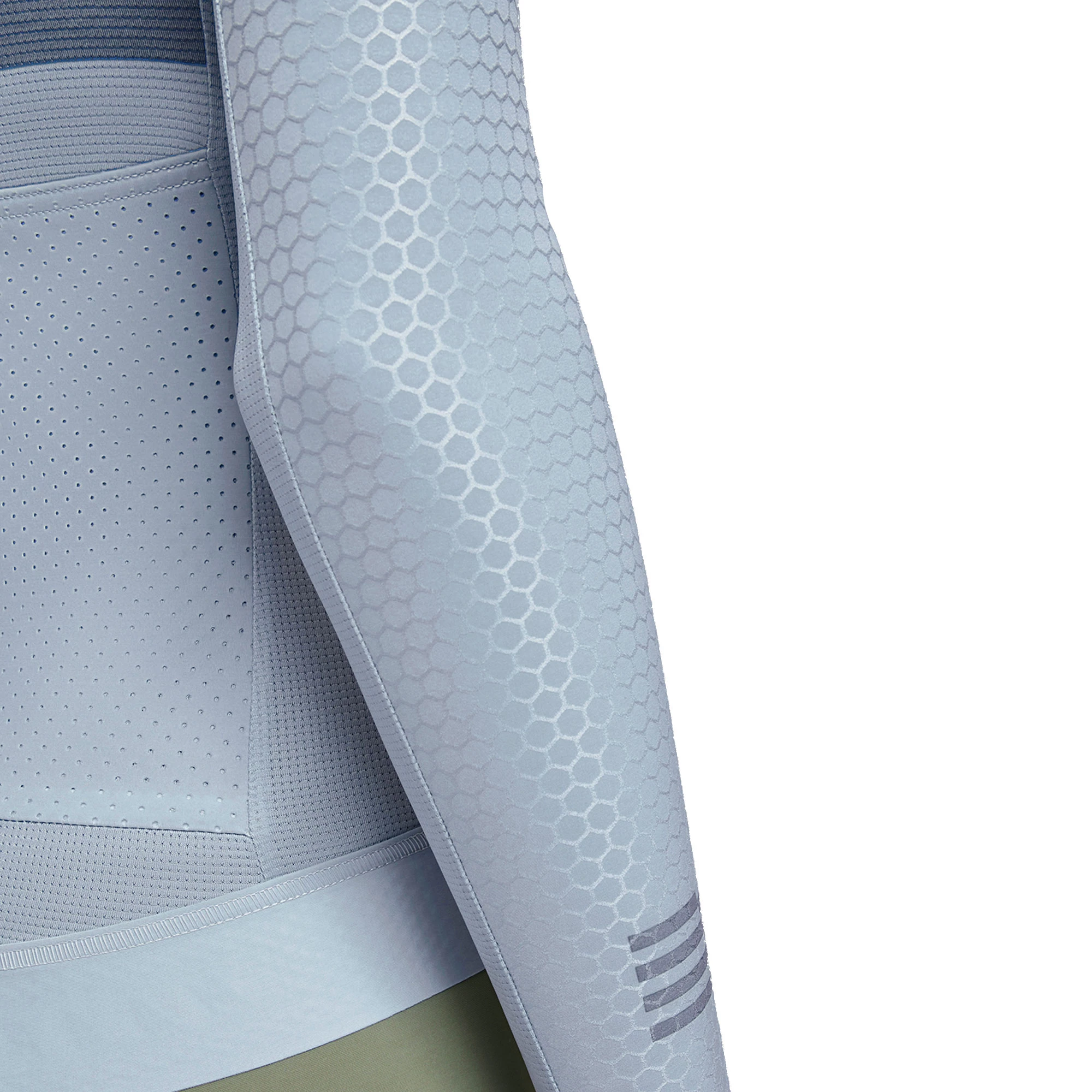 There are three large back pockets included in the design to provide ample storage, and the fabric won’t sag when weighed down. Internal silicone in the waist hem stabilises the jersey, and there’s a full zip, making it easy to cool down fast when required.