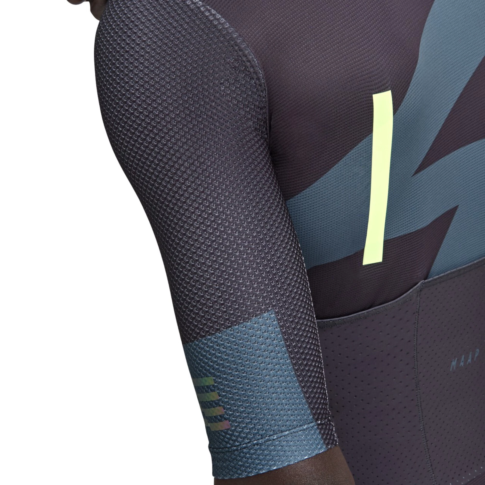 The MAAP Evolve Pro Air Short Sleeve Jersey delivers the perfect balance of style, comfort and performance. It uses the brand’s signature Pro Fit, so it’s tight and aerodynamic without compromising freedom of movement thanks to stretchy materials. Mesh fabrics make up the longer length sleeves and side panels, and there are micro-perforations across the chest and back, making the entire construction incredibly breathable, light and capable of effectively wicking moisture. SPF 50+ protection keeps your skin safe on sunny days.