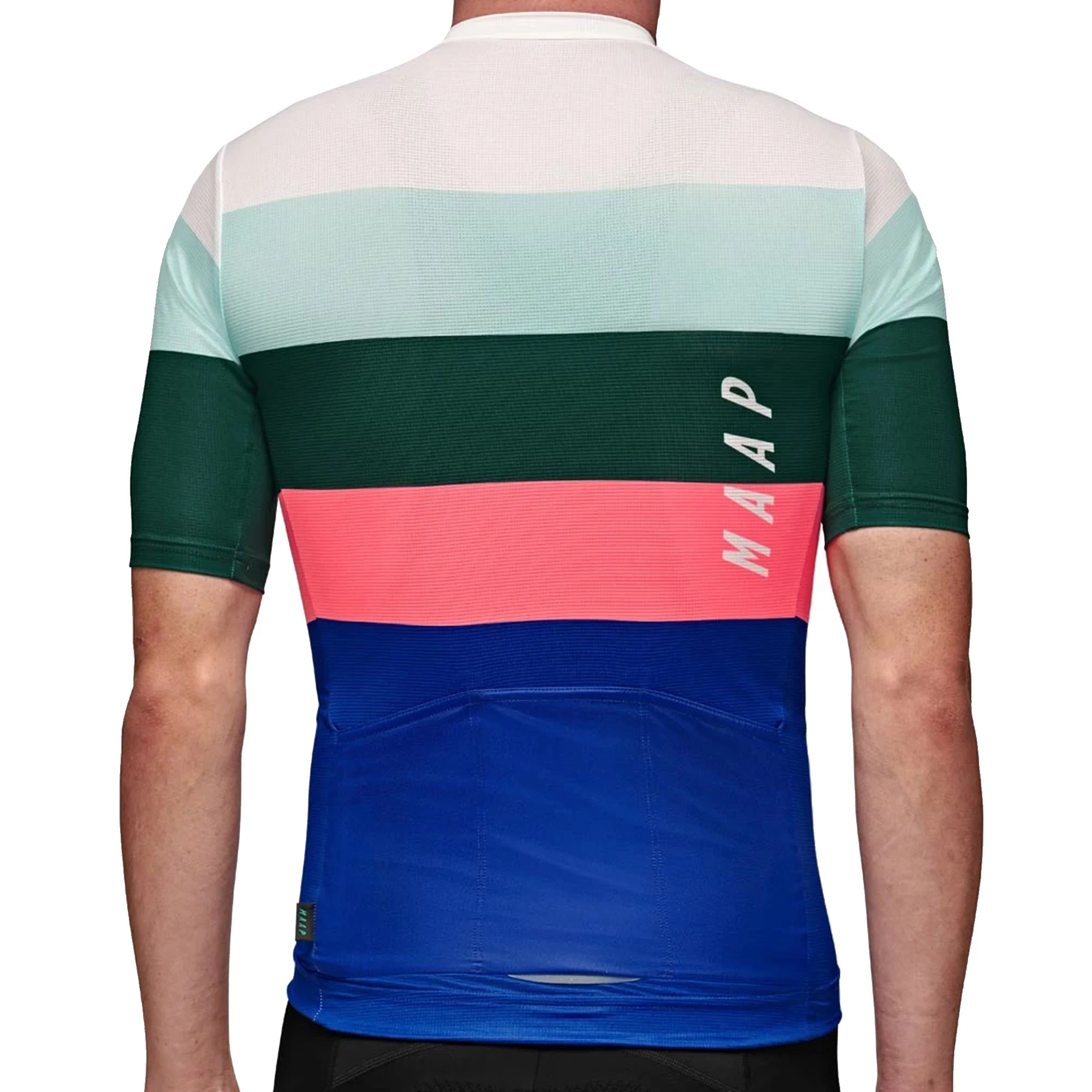 The Signature Team Fit of the MAAP Fat Stripe Team Short Sleeve Jersey is slightly more relaxed than their Pro Fit offerings, but still maintains a close, streamlined cut for efficiency. 85% of the fabrics used are from recycled fibres, with the fabric providing good breathability and moisture management. Micro mesh back and collar panels further increase airflow and the full zip can be used when the temperature really rises.Three rear pockets provide enough space for nutrition, phone and other essentials and the unidirectional anti-sag material helps the pockets keep their shape even when fully loaded.