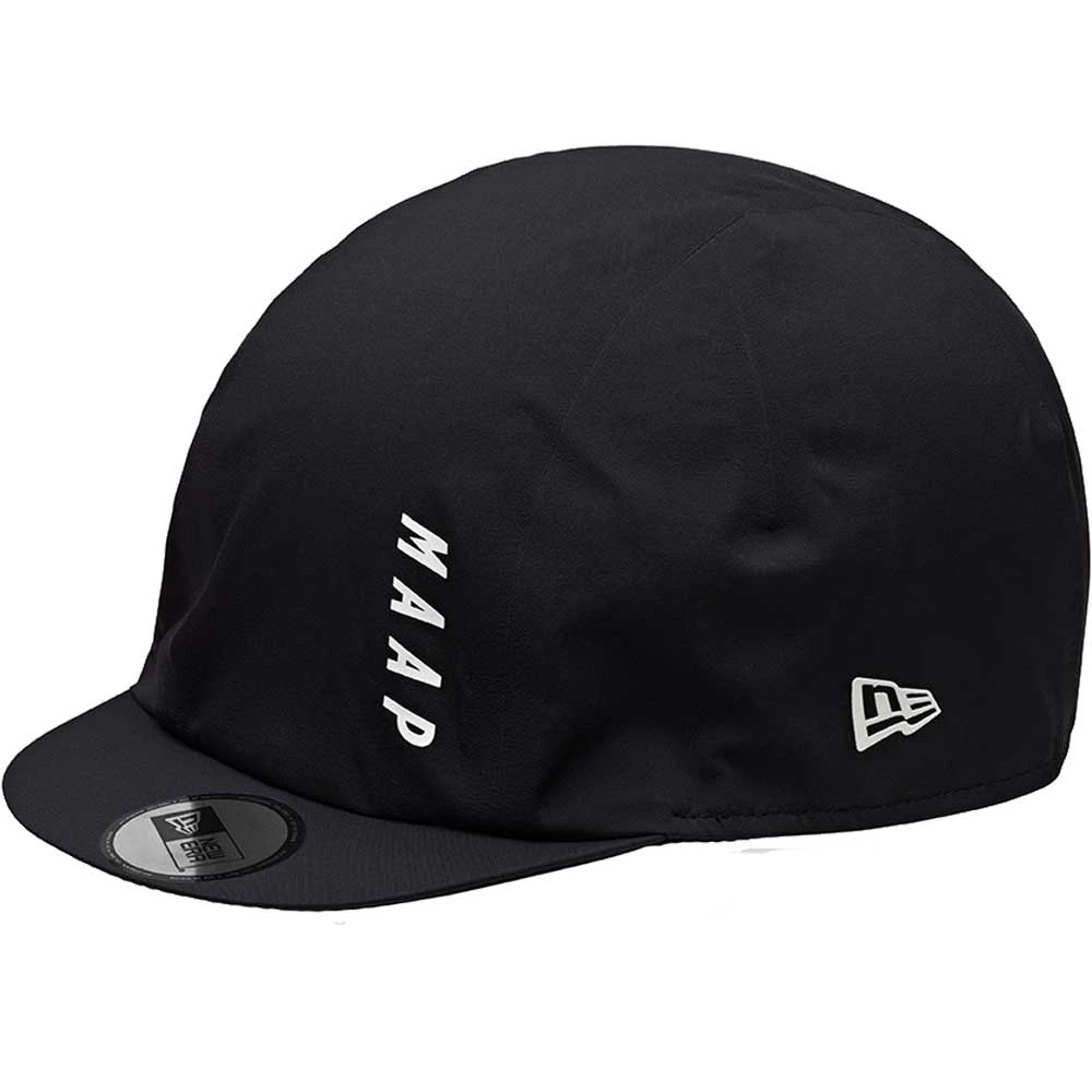 Taking design cues from headwear aficionados New Era, the MAAP Prime New Era Rain Cap uses three-layer, waterproof Polartec Neoshell fabric to shield the head from heavy rain. This material is also highly breathable to combat overheating. Thermo welded and taped seams resist water ingress, while the elasticated internal sweatband keeps the cap perfectly positioned and stops rain and sweat from dripping in the eyes. Reflective graphics complete the design, helping the rider to stay safe in low-light conditions.
