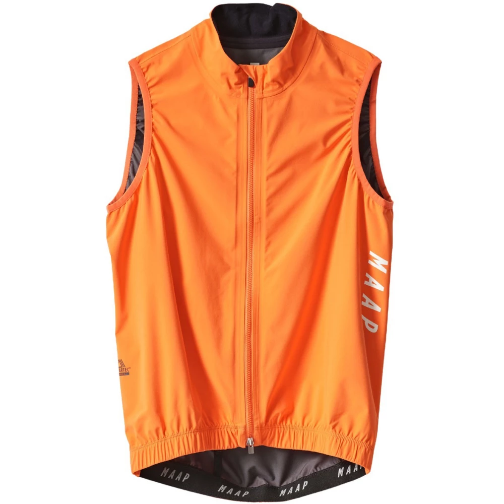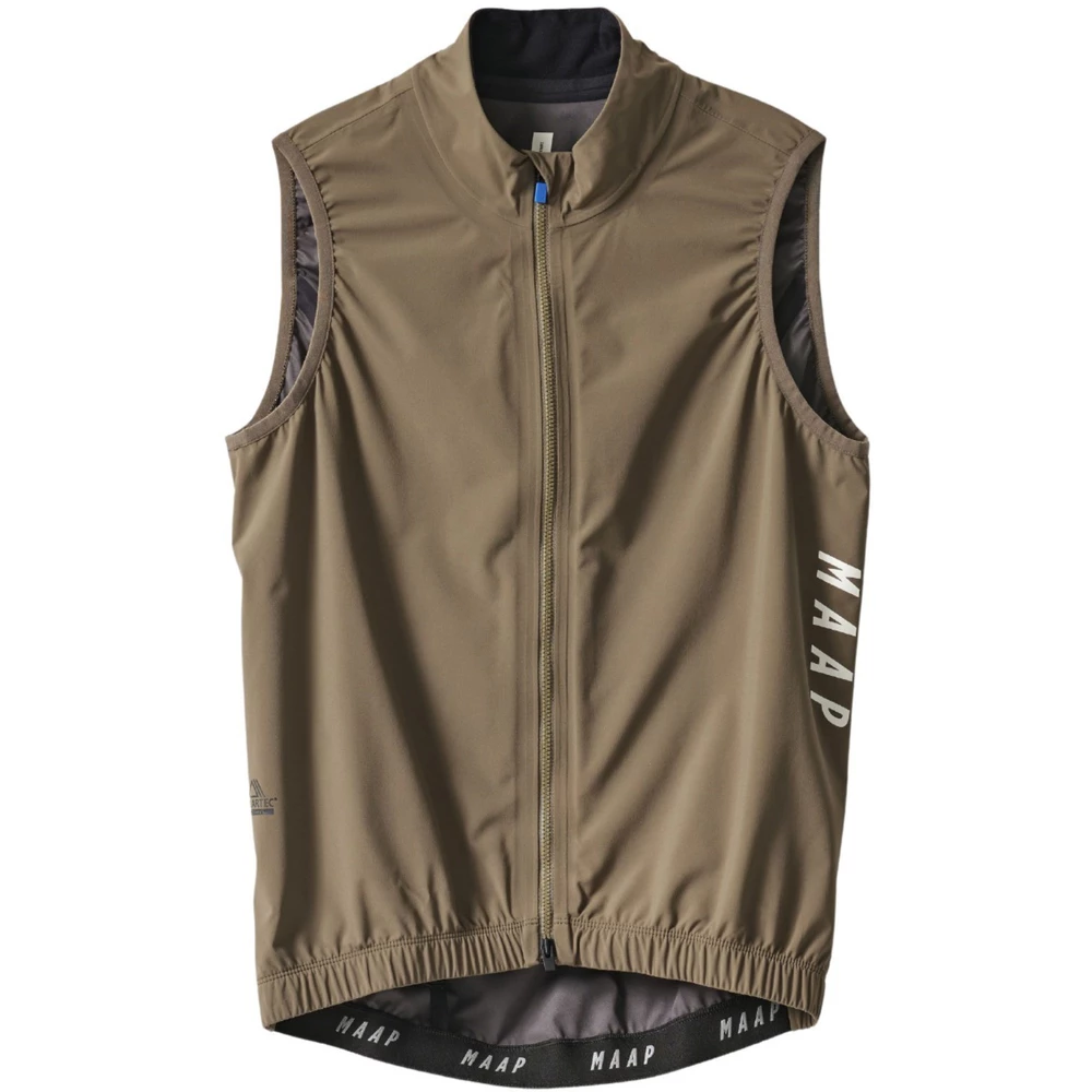 The MAAP Prime Stow Vest features Polartec Neoshell material panels that are waterproof and windproof to offer the rider protection against inclement weather. This material is highly breathable to avoid a cold, damp feeling from sweat saturation and lightweight to enable the vest to be packed into a jersey pocket when not in use. The panels are joined with thermo taped seams that further seal out rain and chilly draughts.