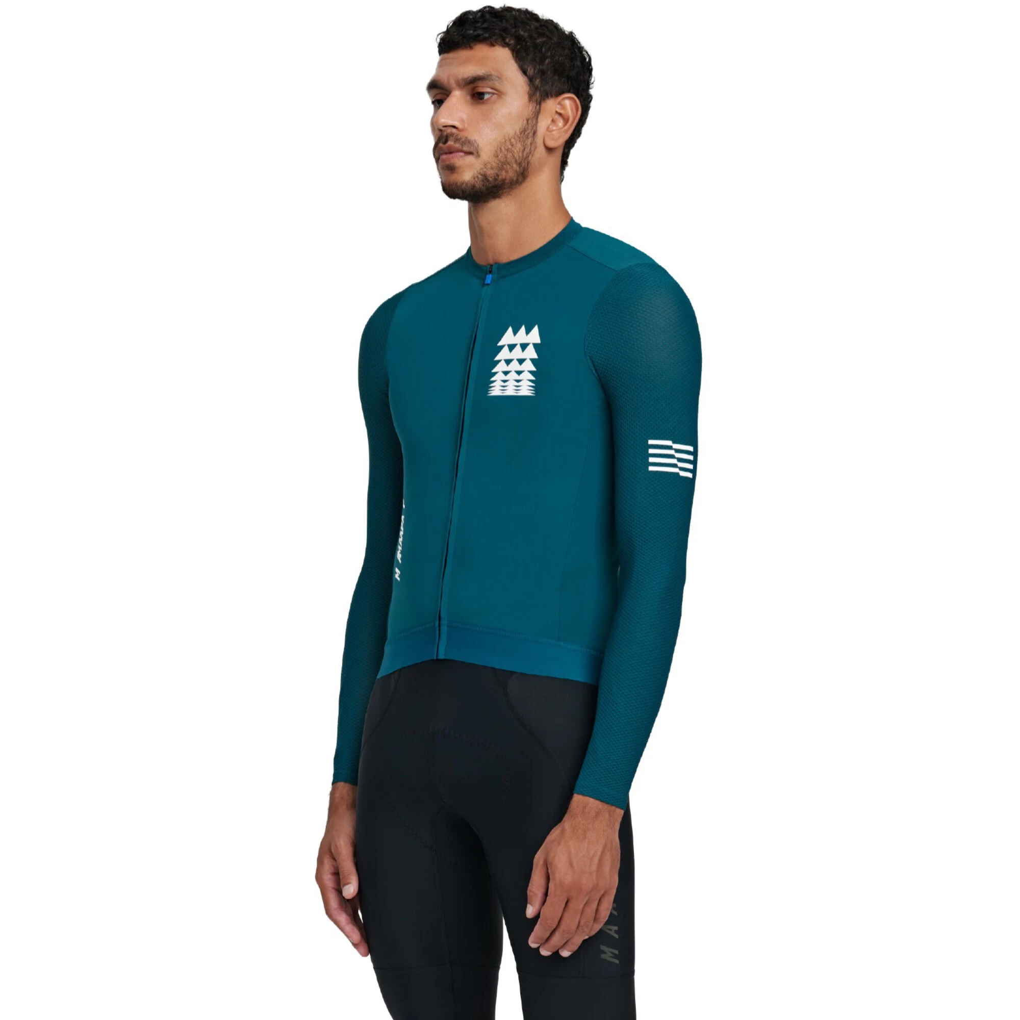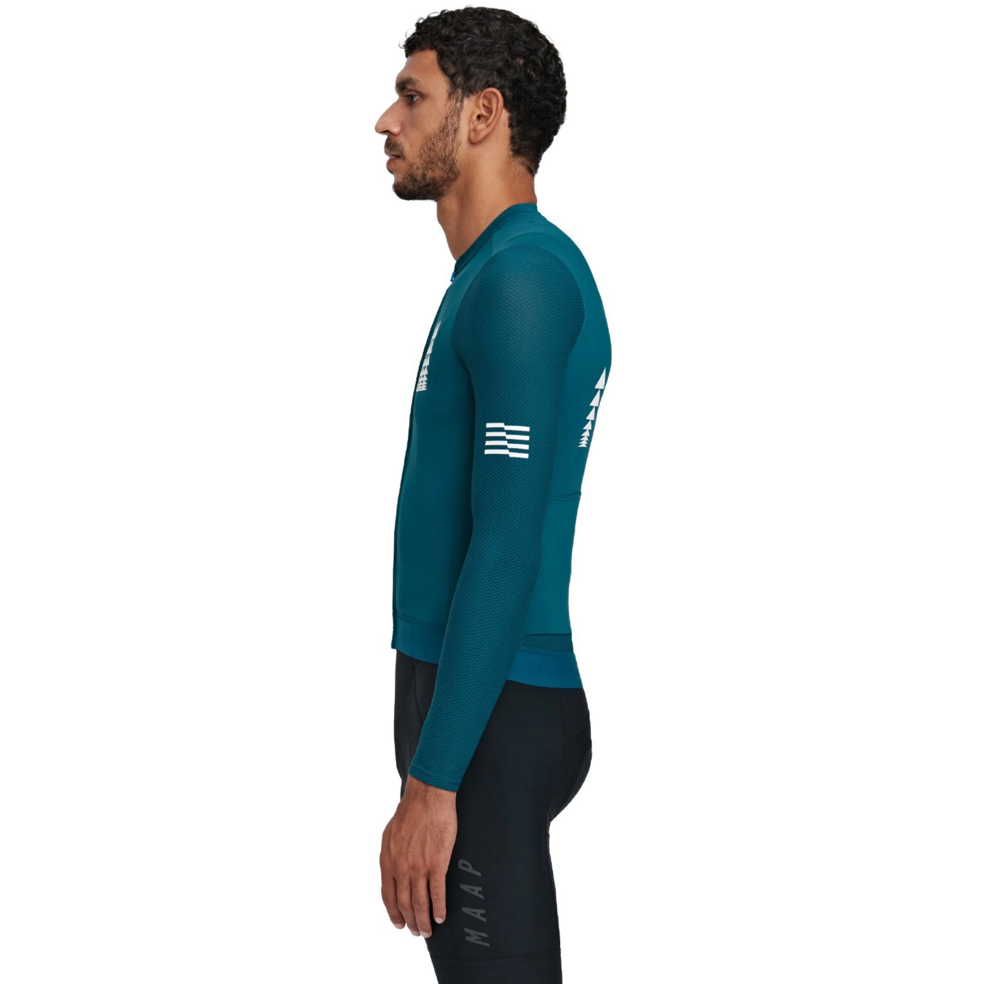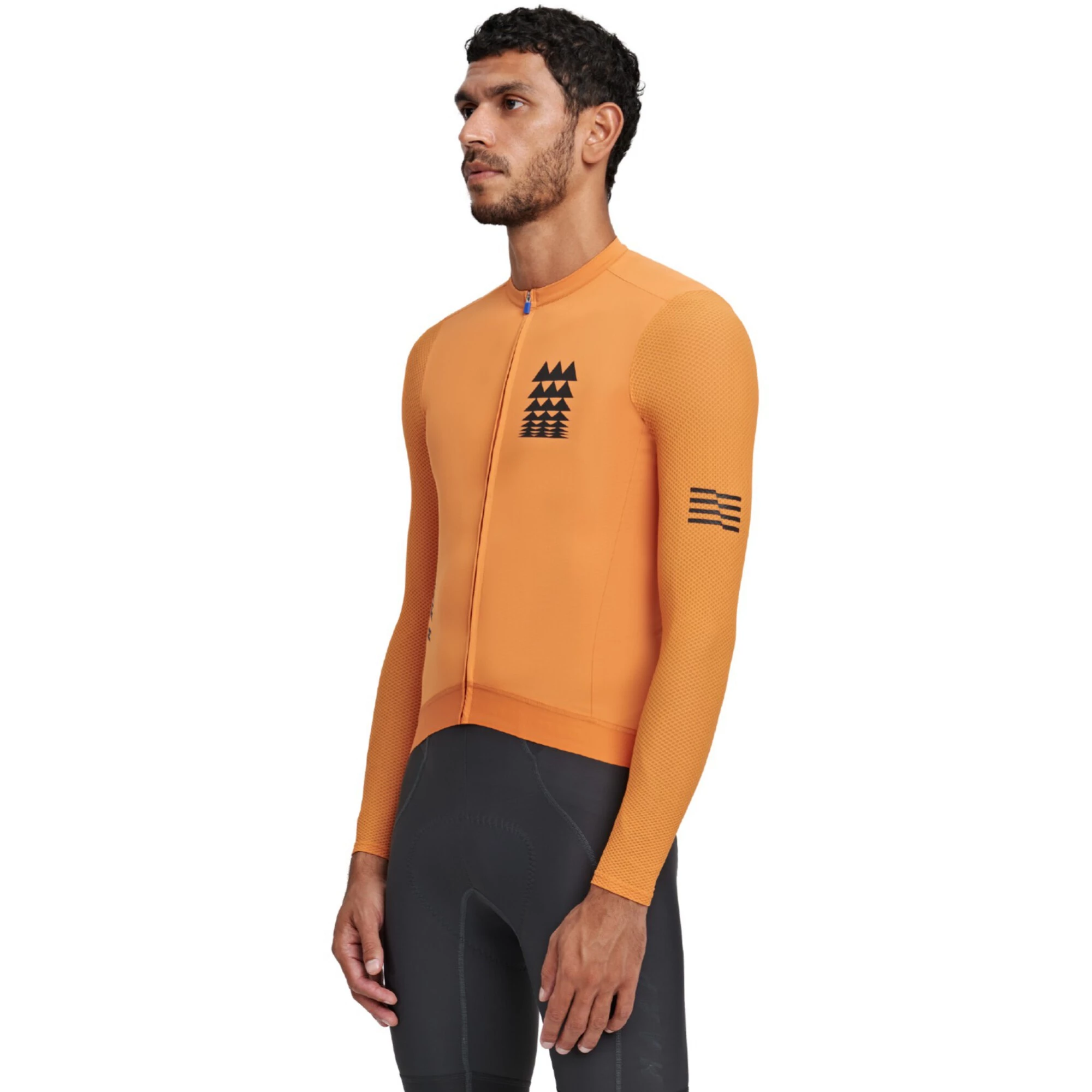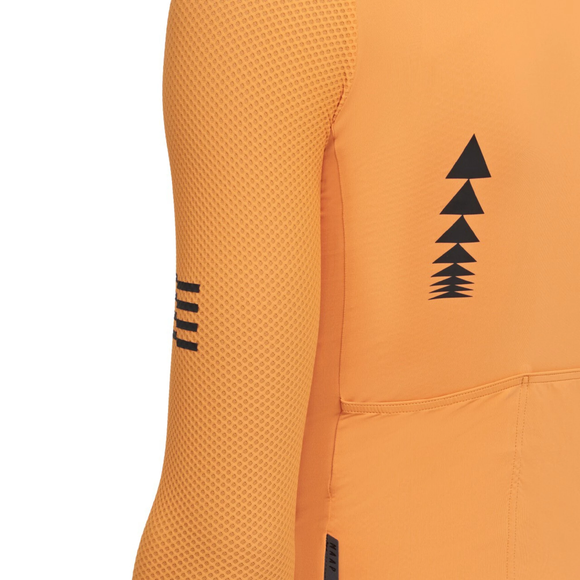 MAAP’s Shift Pro Base Long Sleeve Jersey combines comfort and performance by using soft Italian fabrics that feel great against the skin and a honeycomb mesh on the sleeves that smooths the airflow over the rider. The Signature Pro fit ensures that the jersey is very close-cut without being at all restrictive in the riding position and the silicone print on the elastic hem prevents it from riding up in use.