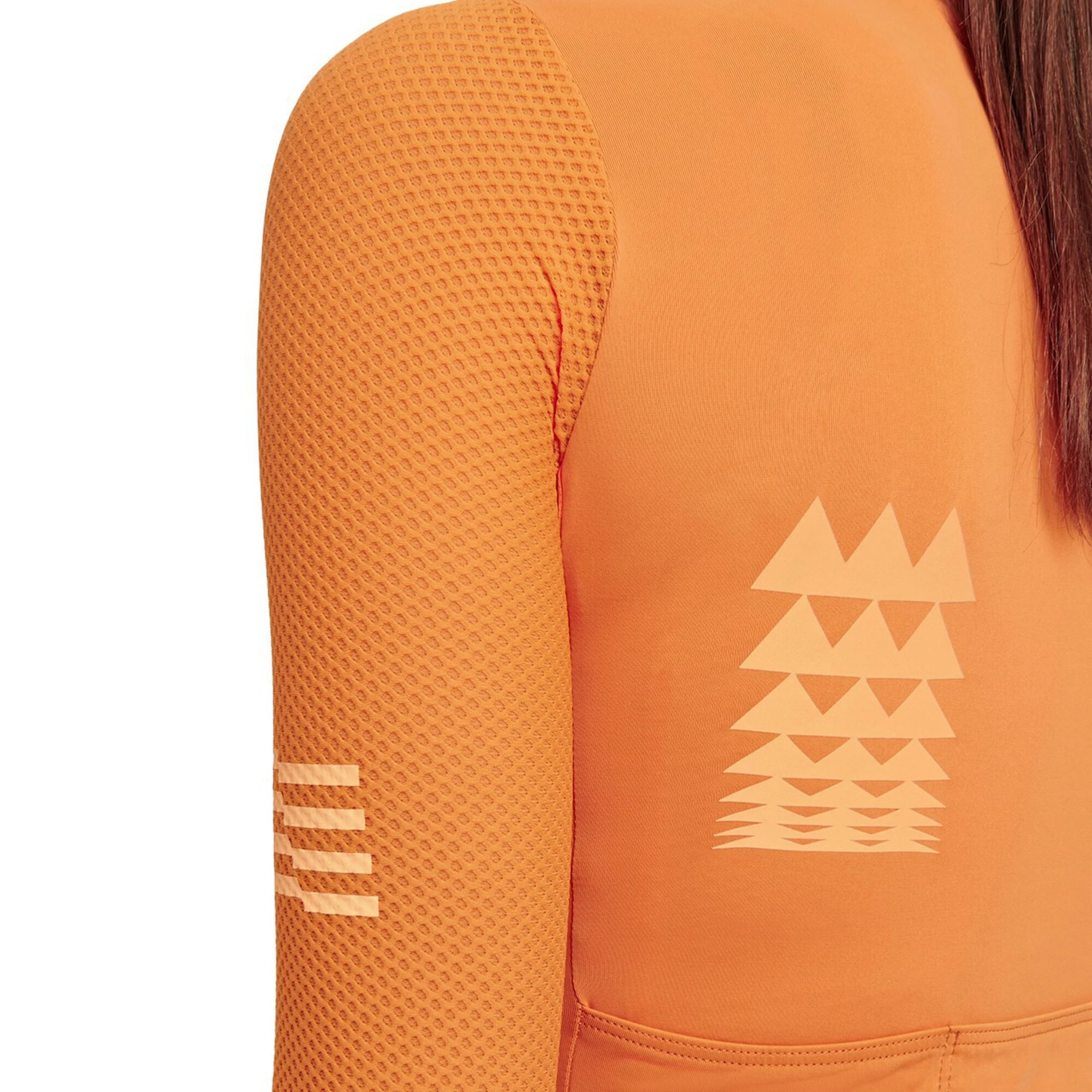 MAAP’s Shift Pro Base Womens Long Sleeve Jersey provides an aerodynamic advantage thanks to the honeycomb mesh sleeves that smooths the flow of air over them. Soft Italian fabrics ensure that the jersey is super comfortable despite its close-fitting design, with the body providing SPF 50+ sun protection and the sleeves SPF 15+.