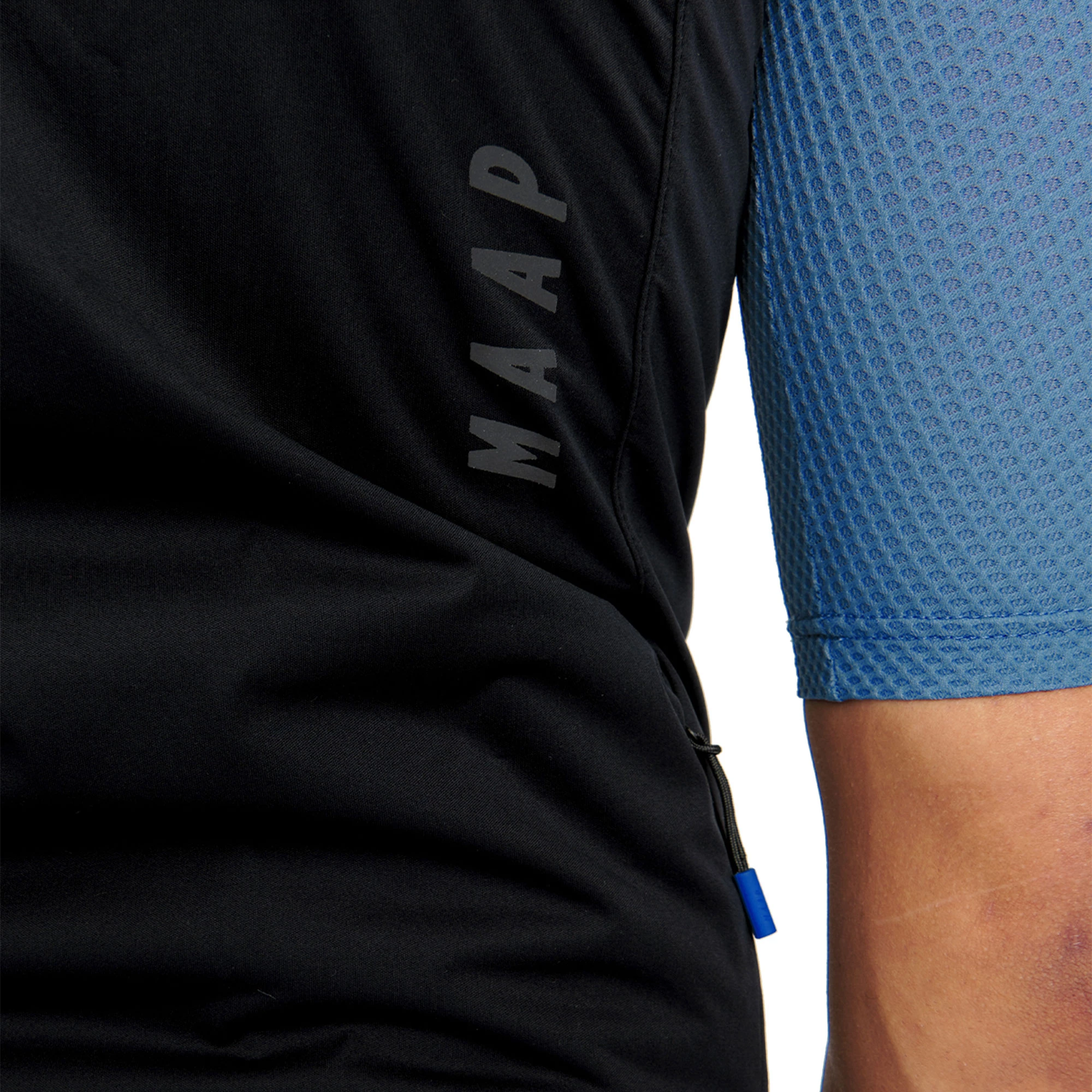 A true essential, layer the MAAP Unite Team Vest up or down depending on the temperature – ideal for nippy descents, post-ride at the cafe and whenever a quick, windproof layer is required to shut out the chill and maintain core warmth. The Durable Water Repellent coating keeps water rolling off its surface, so pull this vest on to avoid getting cold when caught in scattered showers, and the side zipped pocket is perfect for a phone or any other essentials that may need to be accessed quickly, but should also be shielded from the elements. The YKK Vision LockZip can be opened from either end, meaning temperature regulation is intuitive and items within jersey pockets can be reached under the vest.